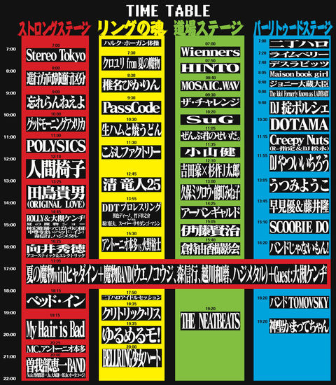 夏の魔物withヒャダイン・人間椅子・BELLRING少女ハート・清竜人25・藤井隆・POLYSICS・神聖かまってちゃん・忘れらんねえよ・曽我部恵一・ROLLY・SCOOBIE DO・THE NEATBEATS・HINTO・バンドTOMOVSKY・ザ・チャレンジ・Wienners・MOSAIC.WAV・アーバンギャルド・ベッド・イン・クリトリック・リス・早見優・バンドじゃないもん!・ゆるめるモ!・生ハムと焼うどん・ライムベリー・椎名ぴかりん・吉田豪・杉作J太郎・久保ミツロウ・能町みね子・伊藤賢治・DJやついいちろう・DDTプロレスリング